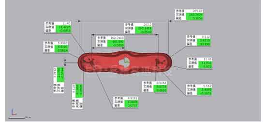 Three-dimensional measurement and inspection solution for bathroom faucet bases, using a three-dimensional scanner to obtain 3D data of the bathroom faucet base. The three-dimensional data of the faucet base is aligned and compared with the original design 3D data. The specific size data of the faucet base is measured and the full size and curved surface of the bathroom faucet are detected. , Radian, etc.
